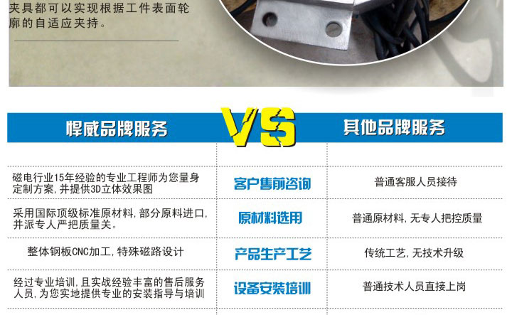 悍威電控永磁夾具是為保證焊件尺寸,提高焊接裝夾精度和效率,防止焊接變形所采用的焊接專用電永磁系列工裝夾具設(shè)備