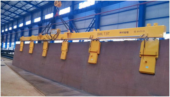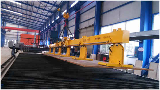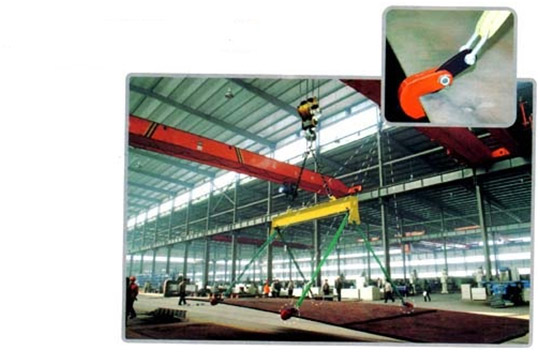 吊具橫梁具有平、側(cè)吊兩用功能,這樣只需一套吊具就可以滿足工況要求,控制系統(tǒng)分組適應(yīng)吊運(yùn)不同規(guī)格鋼板吊運(yùn),操作簡(jiǎn)單,免維護(hù)成本。