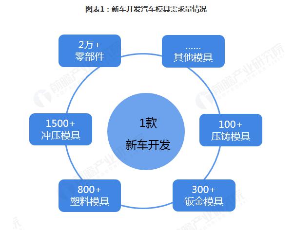 據(jù)統(tǒng)計,汽車上超過95%的零部件均需要依靠模具來進行批量加工制造,而在一款新車開發(fā)中,大約需要2萬多個汽車零部件,包括鈑金件、壓鑄件、沖壓件、塑料件、電子元氣件等等。在這些零部件的研發(fā)與制造過程中,需要大量的模具與治具檢具,其中對模具的需求量最大。