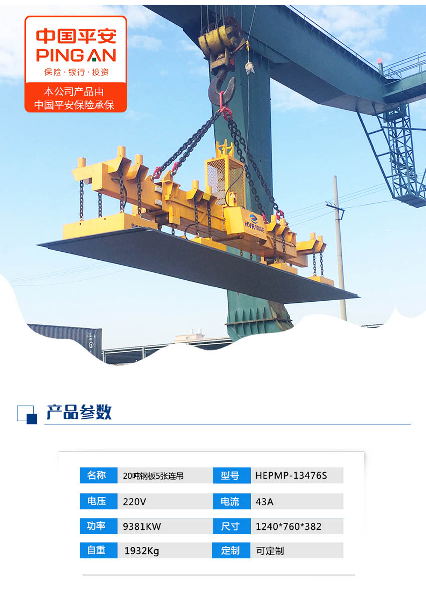 5張鋼板20噸大型磁力吊具